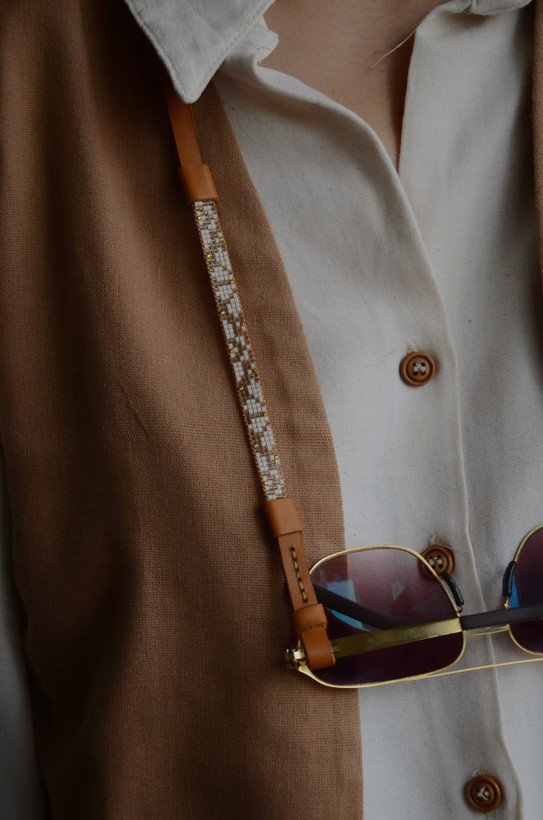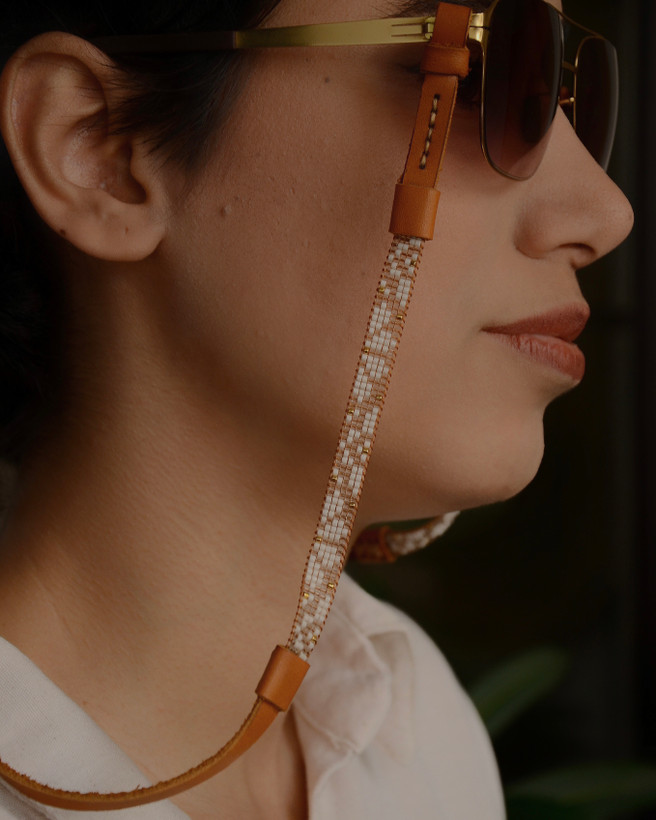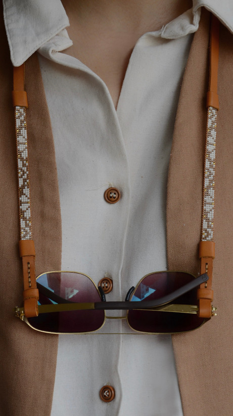 بندعینک دستساز دانتل منجوق و چرم طبیعی