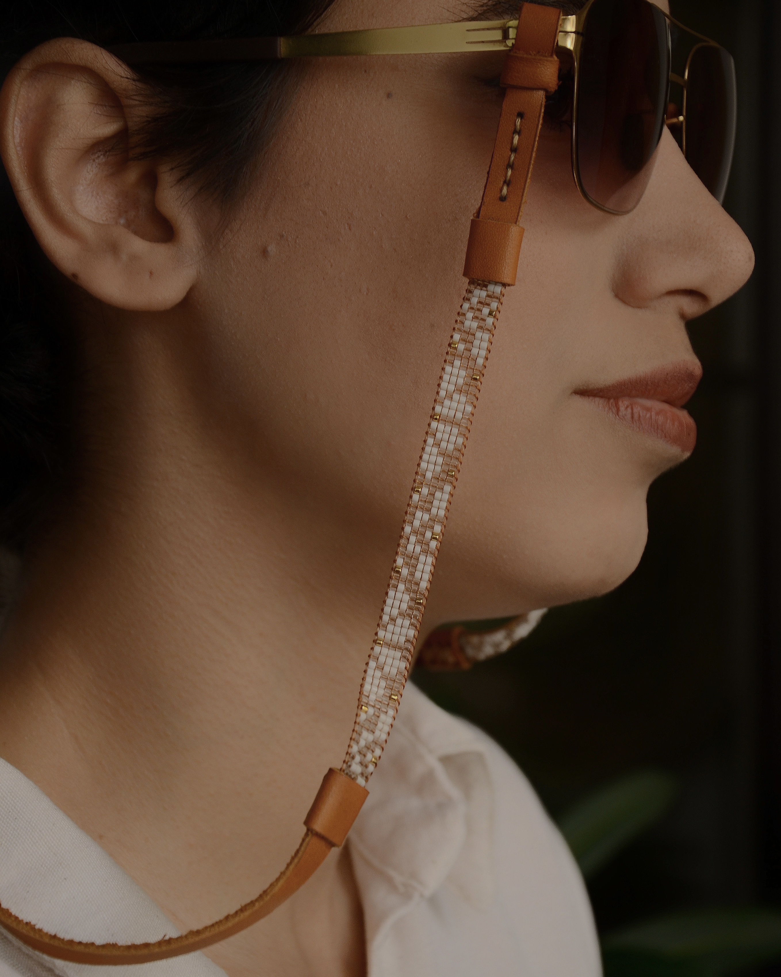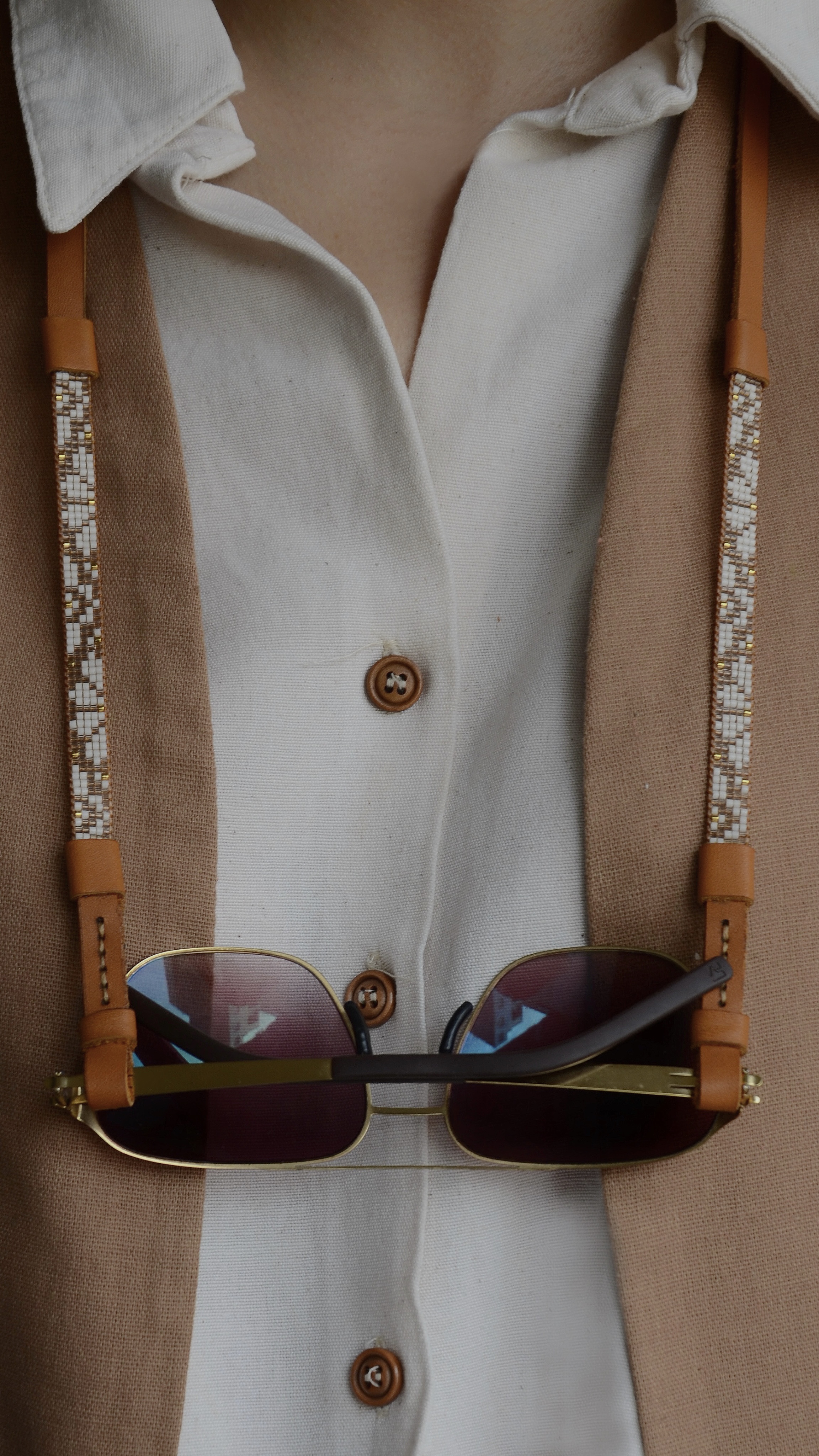 بندعینک دستساز دانتل منجوق و چرم طبیعی